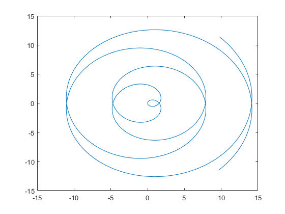 syms t fp = fplot(t, t); axis([-15 15 -15 15]) for i=0.1:0.05:3 fp.XFunction = i.*t.*sin(i*t); fp.YFunction = i.*t.*cos(i*t); drawnow end