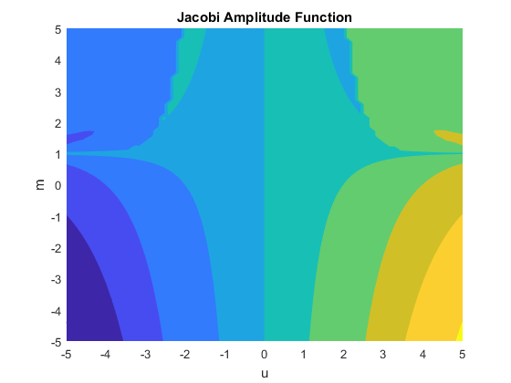 jacobiAM (u, m)jacobiAM( возвращает амплитудную функцию Якоби u,m)u и m. Если u или m является массивом, то jacobiAM действует элементарно.