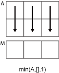 Если A является матрицей, то min(A) - вектор строки, содержащий минимальное значение каждого столбца.