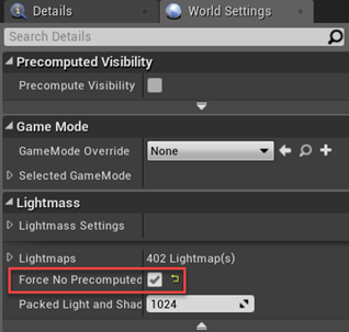 На вкладке «Параметры мира» снимите флажок «Не использовать предварительно рассчитанное освещение».