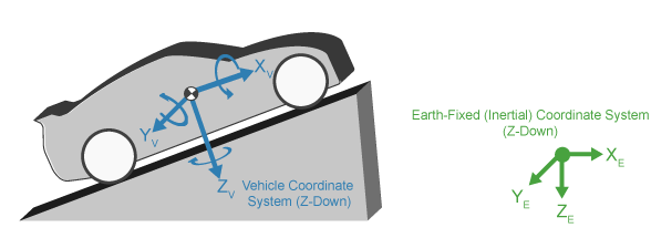 Vehicle Dynamics Blockset™ использует эти системы координат для вычисления динамики и положения объектов транспортного средства в среде визуализации 3D.