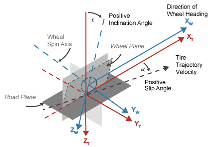 | XT | XT и YT параллельны дорожной плоскости. Пересечение плоскости колеса и плоскости дороги определяет ориентацию оси XT. |