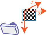 При реконструкции сцены 3-D можно определить результирующие точки 3-D в одной из двух систем координат. В системе координат на основе камеры точки определяются относительно центра камеры. В системе координат на основе шаблона калибровки точки определяются относительно точки в сцене.