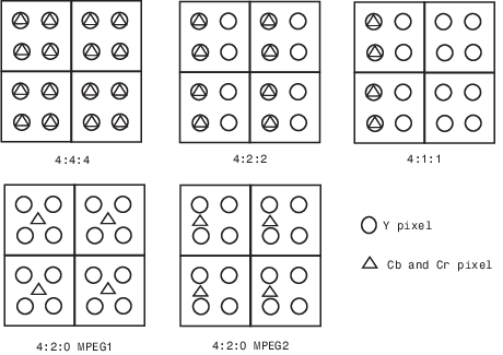 Блок ресамплинга цветности поддерживает форматы, показанные на следующей схеме.