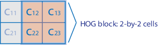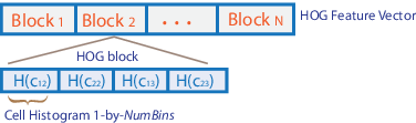 возвращает извлеченные элементы HOG из входного изображения цвета или оттенков серого, features = extractHOGFeatures(I)I. Элементы возвращаются в векторе 1-by-N, где N - длина элемента HOG. Возвращенные элементы кодируют информацию о локальной форме из областей изображения. Эту информацию можно использовать для многих задач, включая классификацию, обнаружение и отслеживание.
