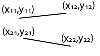 | Для одной или нескольких разъединенных линий укажите матрицу M-by-4, где каждый четырехэлементный вектор, , описывает линию с конечными точками. Полилиния всегда содержит (L-1) число сегментов, поскольку первая и последняя точки вершины не соединены. | Две линии, M = 2