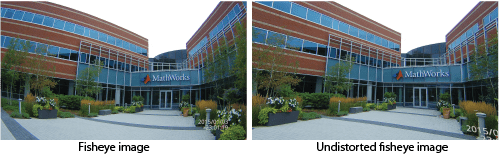 Для удаления искажения объектива с изображения рыбьего глаза можно обнаружить шаблон калибровки шашечной доски, а затем откалибровать камеру. Вы можете найти контрольные точки с помощью detectCheckerboardPoints и generateCheckerboardPoints функции. estimateFisheyeParameters функция использует обнаруженные точки и возвращает fisheyeParameters объект, содержащий внутренние и внешние параметры камеры рыбьего глаза. Вы можете использовать fisheyeCalibrationErrors для проверки точности калибровки.
