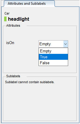 Можно также добавить атрибуты к субблицам. Добавьте атрибут для надписи фары, указывающий, включена ли фара.