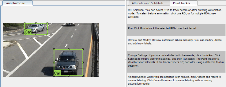 videoLabeler('visiontraffic.avi')Изучите видео. Нажмите кнопку «Воспроизведение