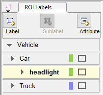 На панели ROI Labels слева выберите метку Car и нажмите Attribute.