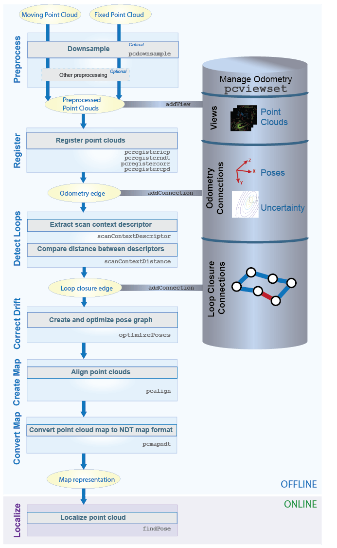 findPose | pcalign | pcregistercorr | pcregistercpd | pcregistericp | pcregisterndt | scanContextDescriptor | scanContextDistance | showpcmapndt | pcviewset | pointCloud | rigid3d