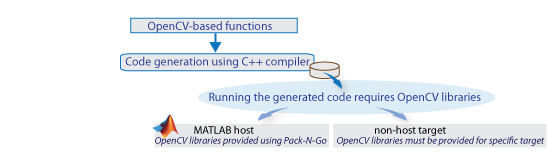 Созданный двоичный файл использует предварительно созданные библиотеки OpenCV, поставляемые с продуктом Computer Vision Toolbox™. Компилятор должен быть совместим с компилятором, используемым для построения библиотек. Для создания библиотек OpenCV для хоста MATLAB ® используются следующие компиляторы: