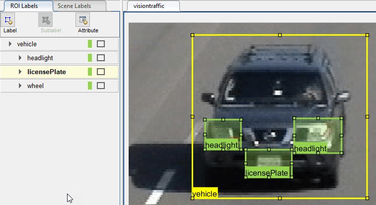 В приложениях Image Labeler, Video Labeler и Ground Truth Labeler (Automated Driving Toolbox) подмаркировка - это тип метки для рисования областей интересов (ROI) вокруг объектов, принадлежащих родительской метке. Для получения более подробной информации о ROI в маркированных исходных данных можно использовать суббнаки. Например: