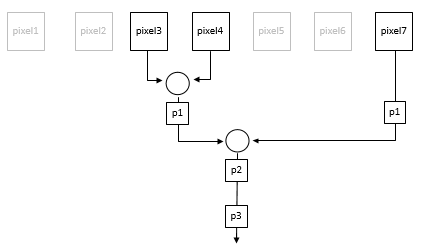 Для структурирования элементов шириной менее 8 пикселей или содержащих нулевые элементы блок реализует конвейерное дерево сравнения для каждой строки окрестности. Дополнительное дерево сравнения находит минимальное значение пикселя результатов строки. Если элемент структурирования содержит нули, которые маскируют пиксели, алгоритм экономит аппаратные ресурсы, не реализуя компараторы для этих местоположений пикселей.