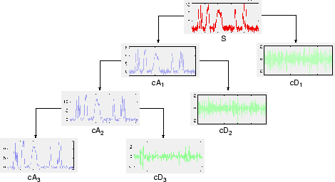 Процесс разложения может быть повторен, с последовательными приближениями, разложенными поочередно, так что один сигнал разбивается на множество компонентов с более низким разрешением. Это называется деревом вейвлет-декомпозиции.