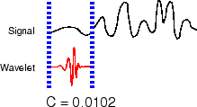 Возьмите вейвлет и сравните его с участком в начале исходного сигнала.
