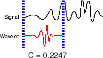 Вычислите число, C, что представляет, насколько тесно коррелирован вейвлет с этим участком сигнала. Чем больше число C в абсолютном значении, чем больше сходство. Это следует из того, что коэффициенты CWT вычисляются с внутренним продуктом. Дополнительные сведения о том, как внутренние продукты измеряют сходство, см. в разделе Внутренние продукты. Если энергия сигнала и энергия импульса равны единице, C может быть интерпретирован как коэффициент корреляции. Следует отметить, что в общем случае энергия сигнала не равна единице, и коэффициенты CWT не могут непосредственно интерпретироваться как коэффициенты корреляции.