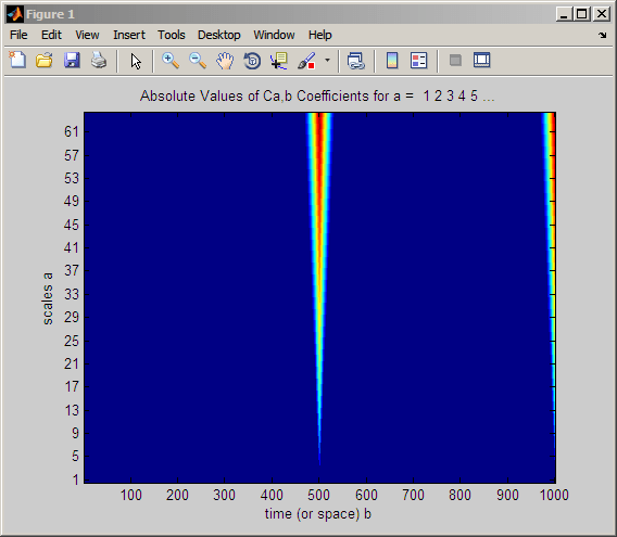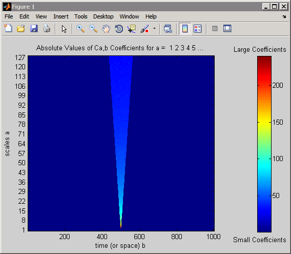 В предыдущем примере коэффициенты CWT стали большими вблизи резкого изменения сигнала. Эта способность обнаруживать разрывы является силой вейвлет-преобразования. Предыдущий пример также продемонстрировал, что коэффициенты CWT лучше всего локализуют разрыв в малых масштабах. При малых масштабах малая поддержка вейвлета гарантирует, что сингулярность влияет только на небольшой набор вейвлет-коэффициентов.