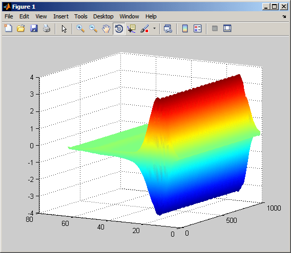 x = [zeros(500,1); ones(500,1)]; CWTcoeffs = cwt(x,1:64,'haar','plot'); colormap jet;