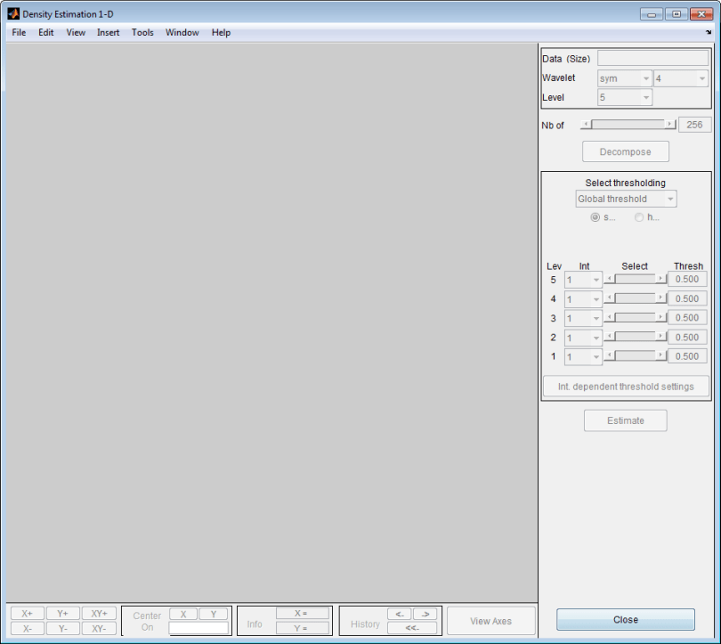 Выберите пункт меню Оценка плотности (Density Estimation 1-D). Появляется инструмент дискретного вейвлет-анализа для оценки плотности 1-D.