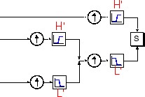 Техническое обсуждение того, как проектировать эти фильтры, доступно на странице 347 книги «Вейвлетс и банки фильтров» (Strang and Nguyen). Фильтры разложения нижних и верхних частот (L и H) вместе с соответствующими фильтрами реконструкции (L' и H'), сформировать систему так называемых квадратурных зеркальных фильтров: