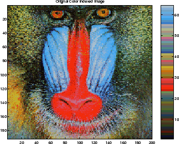 В общем случае цветные индексированные изображения не имеют линейной монотонной цветовой карты и должны быть преобразованы в соответствующее серое индексированное изображение перед выполнением вейвлет-разложения.