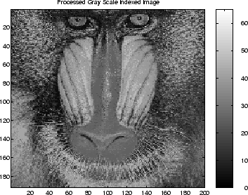 Затем преобразуйте изображение интенсивности по шкале серого в индексированное изображение по шкале серого с 64 различными уровнями и создайте новую карту цветов с 64 уровнями серого: