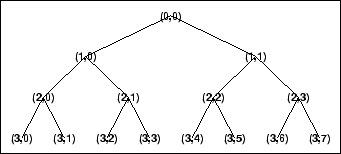 % The current extension mode is zero-padding (see dwtmode). % Load signal. load noisdopp; x = noisdopp; % Decompose x at depth 3 with db1 wavelet, using default % entropy (shannon). wpt = wpdec(x,3,'db1'); % Decompose the packet [3 0]. wpt = wpsplt(wpt,[3 0]); % Plot wavelet packet tree wpt. plot(wpt)
