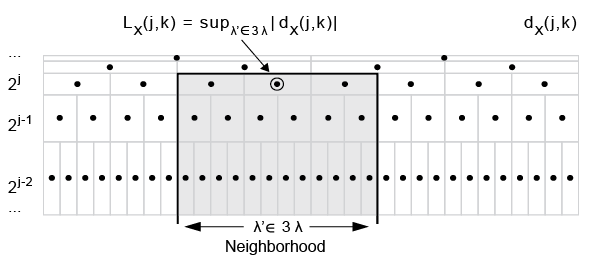 Чтобы вычислить вейвлет-лидеры, Lx (j, k):
