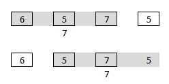Затем посмотрите на три соседних значения и получите максимум. Повторите для следующих трех соседей. Эти максимумы, 7 и 7, являются лидерами импульса для этого уровня.