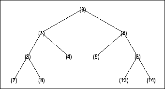 Узлы нумеруются слева направо и сверху вниз. Индекс корня равен 0.