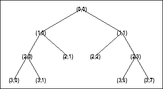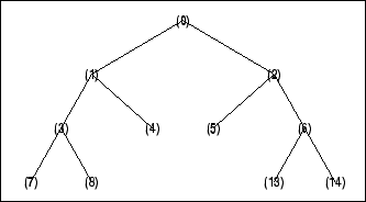 Узлы нумеруются слева направо и сверху вниз. Индекс корня равен 0.