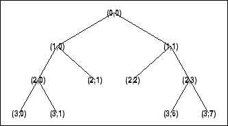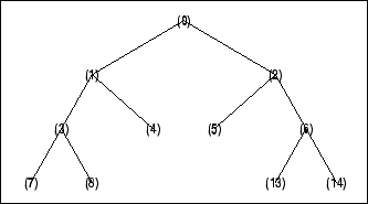 Узлы нумеруются слева направо и сверху вниз. Индекс корня равен 0.