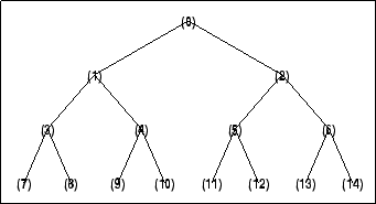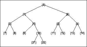 Узлы нумеруются слева направо и сверху вниз. Индекс корня равен 0.