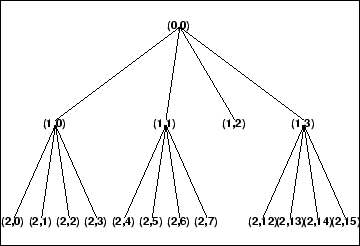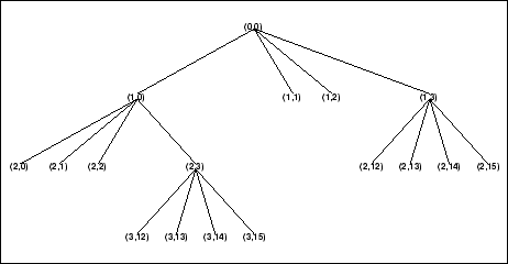 % Create a quadtree (tree of order 4) of depth 2. t4 = ntree(4,2,[1 1 0 1]); % Plot tree t4. plot(t4)