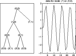 % Create a wavelet packet tree. x = sin(8*pi*[0:0.005:1]); t = wpdec(x,3,'db2'); % Display the generated tree in a Wavelet Packet 1-D GUI window. fig = drawtree(t);