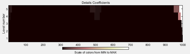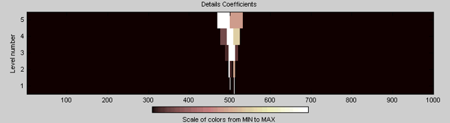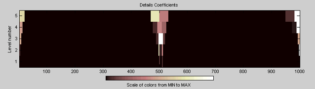 Коэффициенты детализации показывают, что конечные эффекты сигнала отсутствуют, и разрывы хорошо обнаружены.