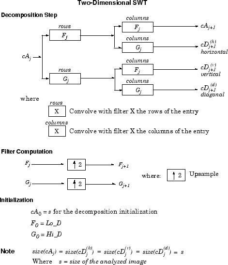 Это можно распространить на 2-D случай. Алгоритм стационарного вейвлет-преобразования для изображений визуализируется на следующем рисунке.