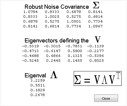 Предложенный ниже способ многомерного деноизирования интересен, если матрица ковариации шума далека от диагональной, проявляющей пространственную корреляцию, что в данном примере имеет место.