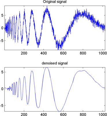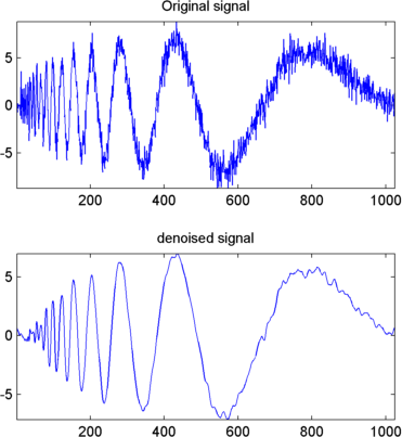 Для отключения сигнала используйте ddencmp для вычисления глобального порога по умолчанию. Используйте wthresh чтобы выполнить фактическое пороговое значение коэффициентов детализации, а затем используйте команду iswt команду на получение денойзированного сигнала.