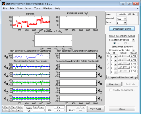 Запустите инструмент Denoising 1-D стационарного вейвлет-преобразования.