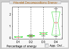 В первом столбце показан процент энергии для аппроксимаций на уровне 2. Столбцы 2 и 3 показывают процент энергии для деталей на уровне 2 и 1 соответственно.
