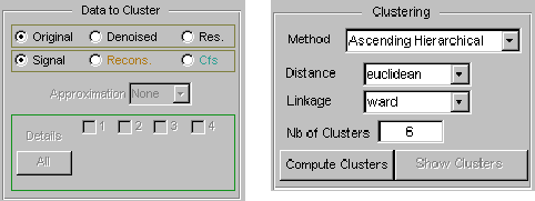 Нажмите кнопку Кластеризация. Появится окно Кластеризация анализа вейвлет-сигналов (Wavelet 1-D Multisignal Analysis Clustering).