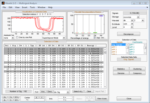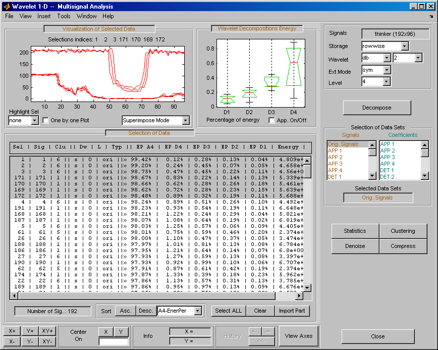 Для этого примера вернитесь в главное окно и импортируйте Ori Signals разбиение и сортировка сигналов в порядке убывания относительно A4 процента энергии.