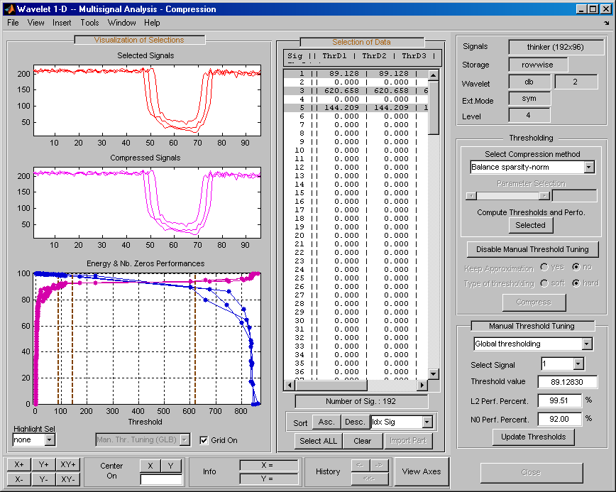 Мультисигнал 1-D пороговые значения сжатия и производительность | |
