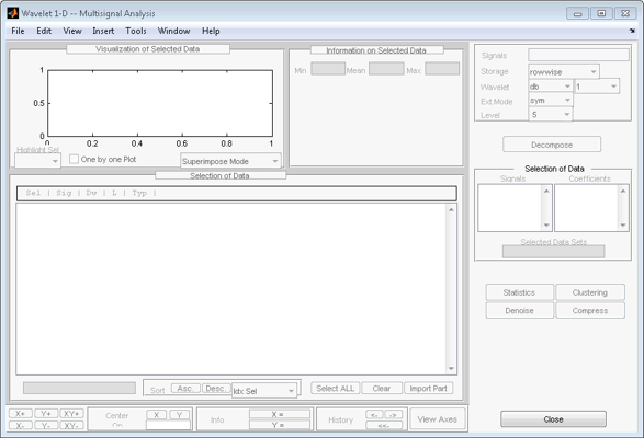 Анализ можно выполнить из командной строки MATLAB ® или с помощью приложения Wavelet Analyzer. В этом разделе описывается каждый метод. В последнем разделе рассматривается обмен информацией о сигналах и коэффициентах между диском и графическими инструментами.