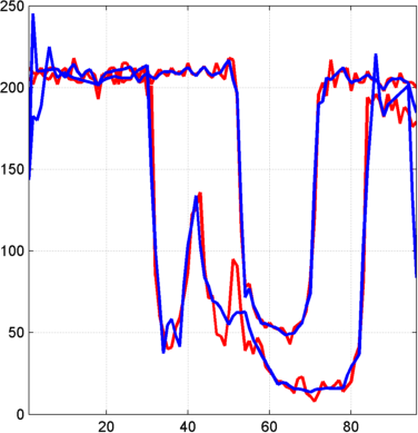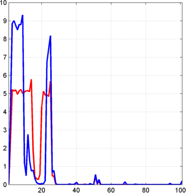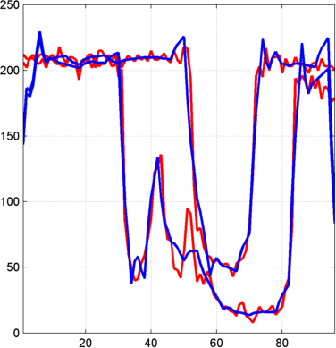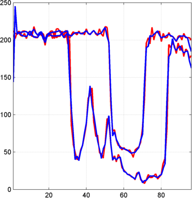 figure; idxSIG = [1 31]; plot(X(idxSIG,:)','r','linewidth',2); hold on plot(Xbis(idxSIG,:)','b','linewidth',2); grid; set(gca,'Xlim',[1,96])