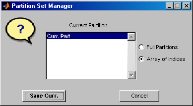 Разделы сохраняются как массив целых чисел, где каждый столбец соответствует одному разделу и содержит индексы кластеров. При выборе Full Partitions параметр, объект массива (wpartobj) сохраняется.