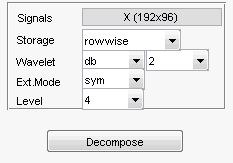 Коэффициенты cA и cD{k}, для (k = 1 кому dec.level), являются матрицами и хранятся на основе строк, если dec.dirDec равно 'r' или по столбцам, если dec.dirDec равно 'c'.