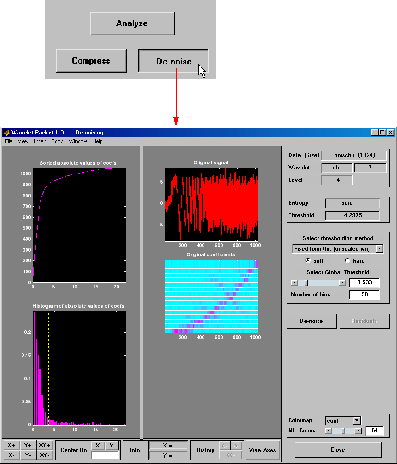 Вы также можете использовать wpdencmp функция для выполнения шумоподавления или сжатия вейвлет-пакета из командной строки.